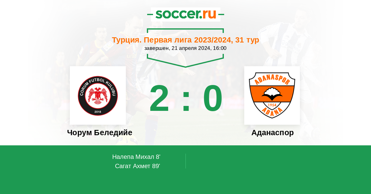 Протокол матча Чорум Беледийе против Аданаспор