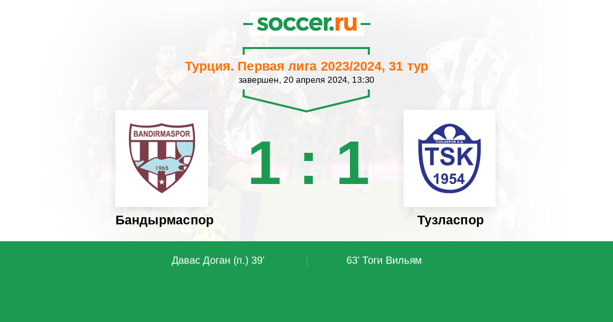 Протокол матча Бандырмаспор против Тузласпор