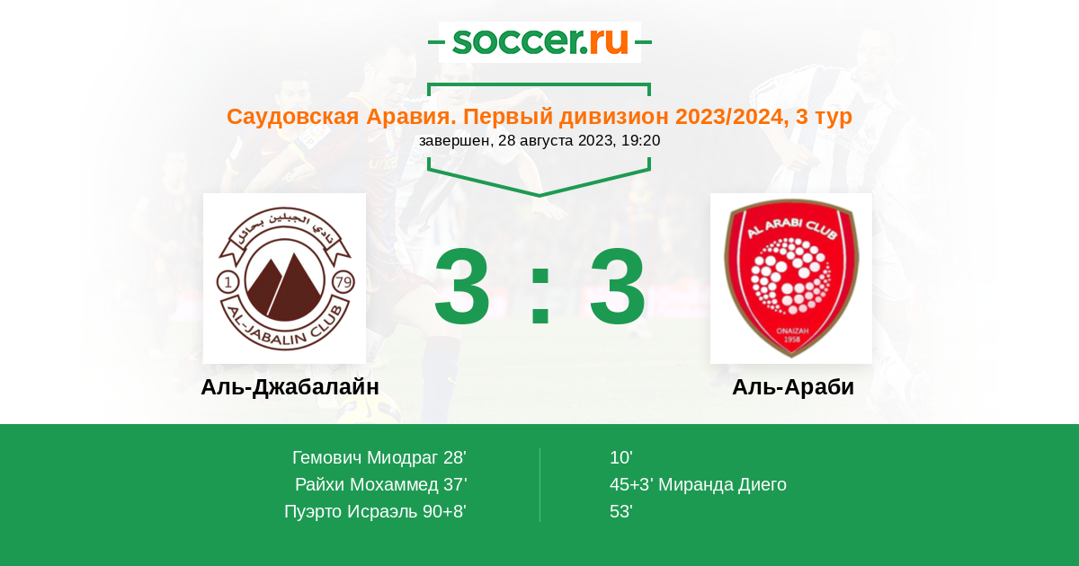 Протокол матча Аль-Джабалайн против Аль-Араби