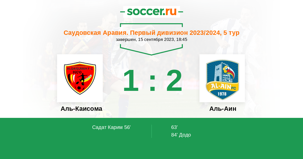 Протокол матча Аль-Каисома против Аль-Аин