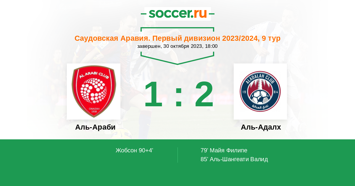Протокол матча Аль-Араби против Аль-Адалх