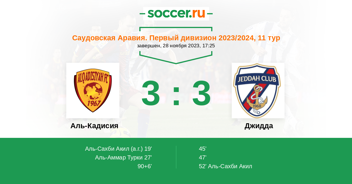 Протокол матча Аль-Кадисия против Джидда