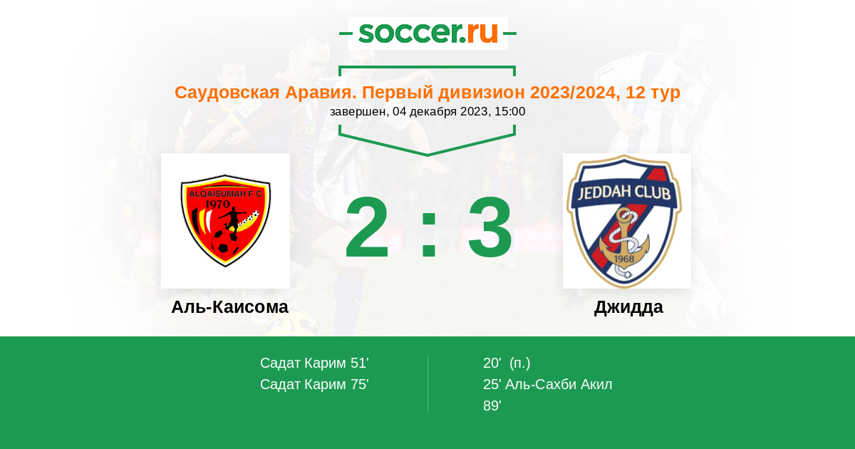 Протокол матча Аль-Каисома против Джидда