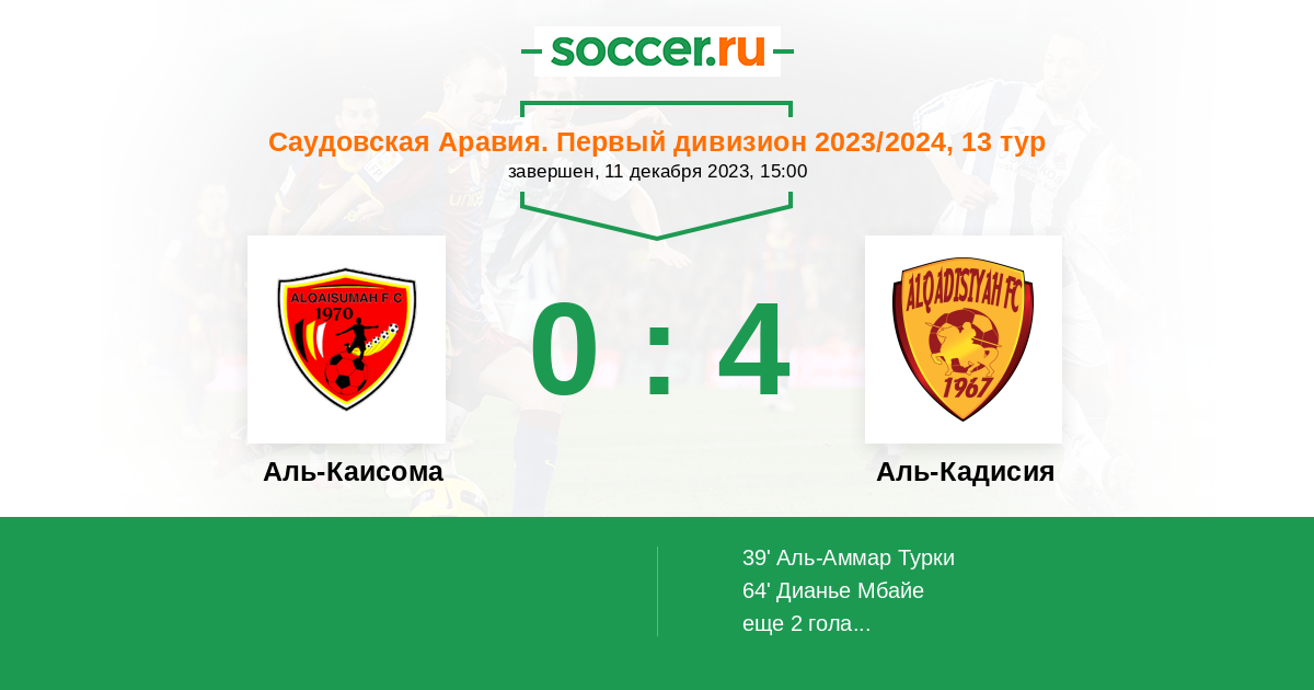 39' (0:1) Аль-Аммар Турки