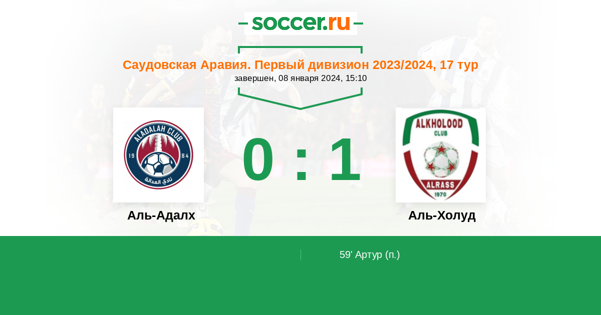 Протокол матча Аль-Адалх против Аль-Холуд