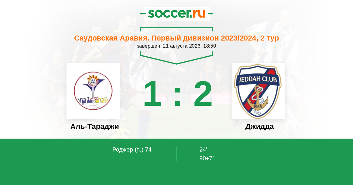 Протокол матча Аль-Тараджи против Джидда