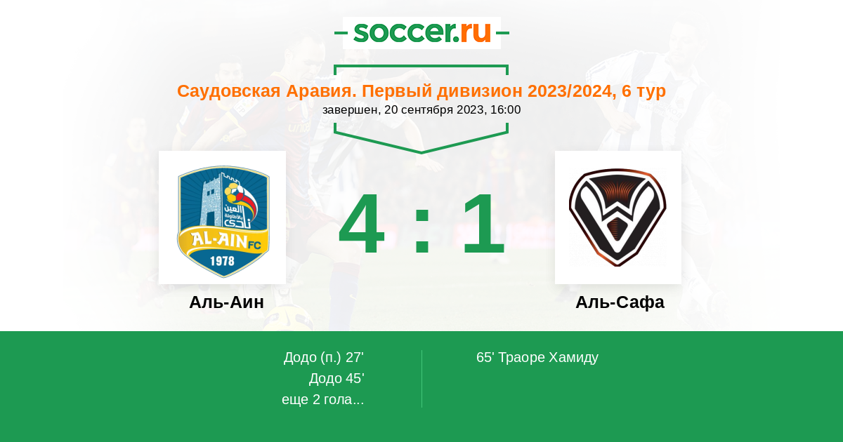 Протокол матча Аль-Аин против Аль-Сафа
