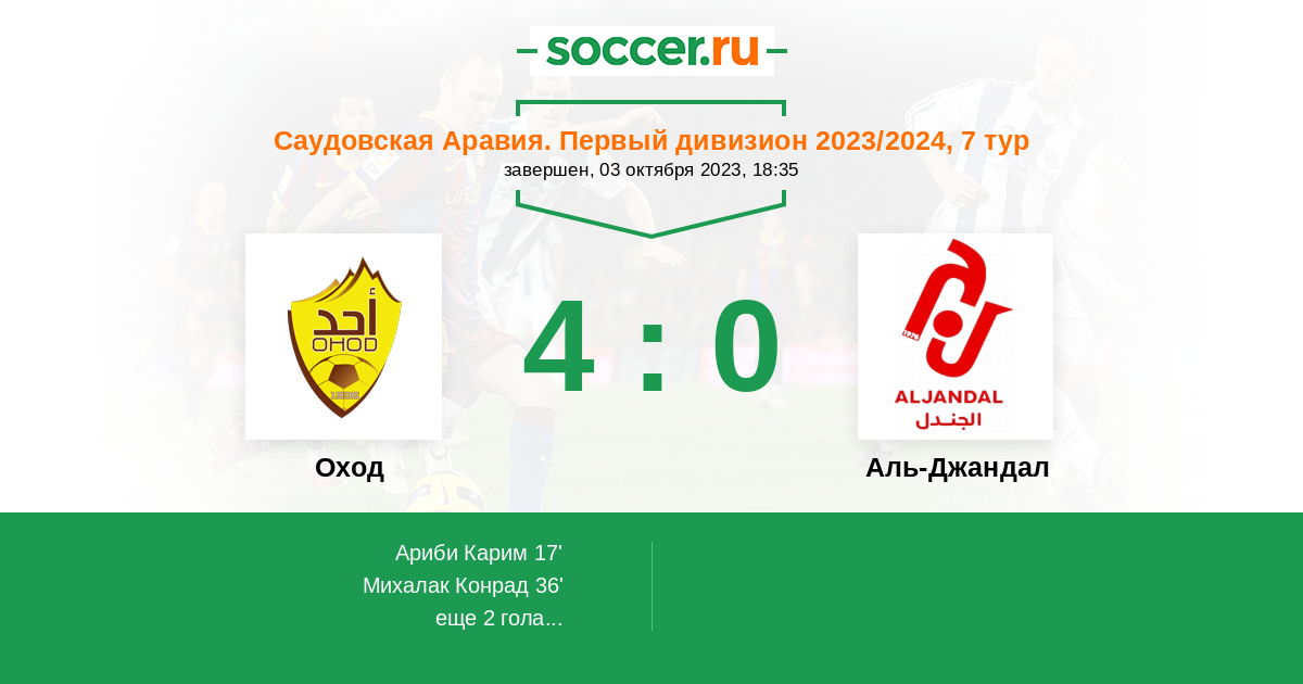 Протокол матча Оход против Аль-Джандал