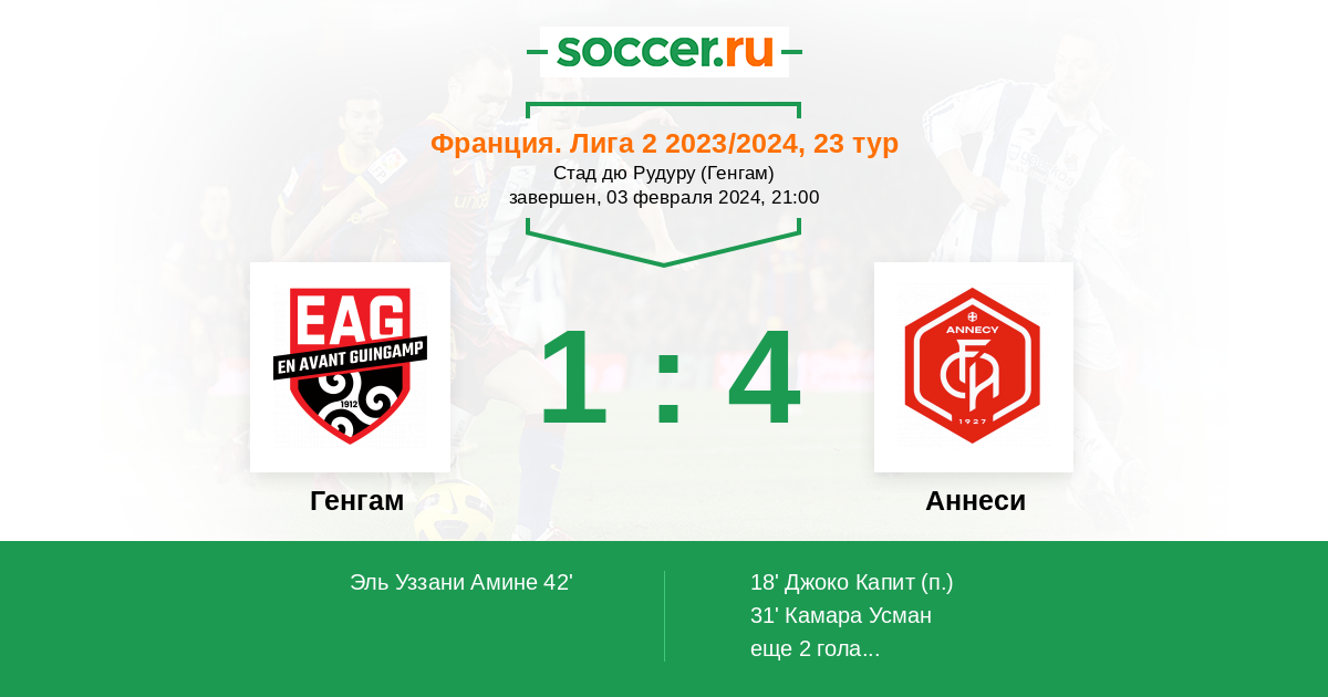 Протокол матча Генгам против Анси