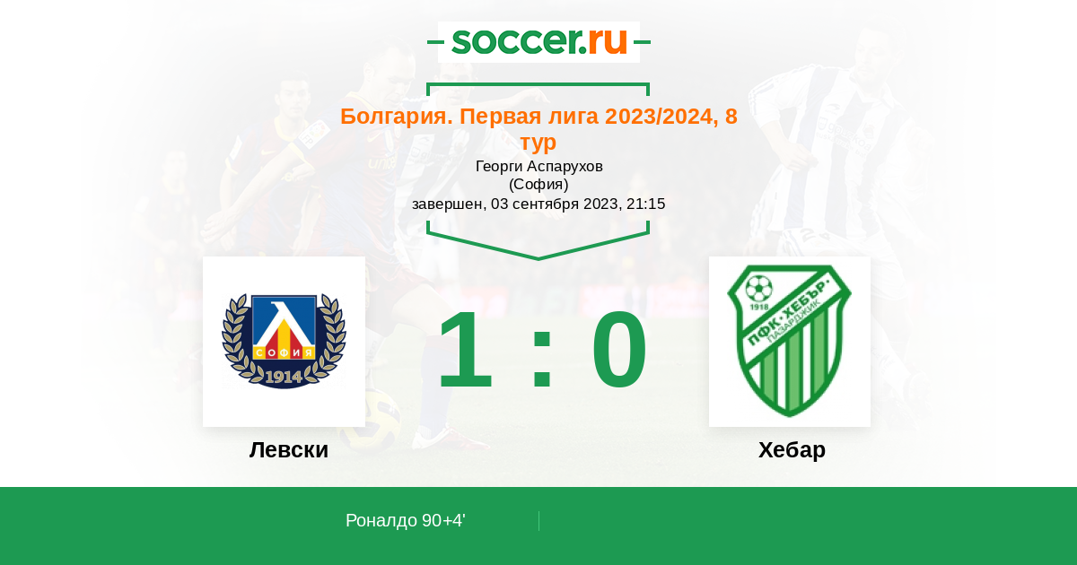 Протокол матча Левски против Хебар
