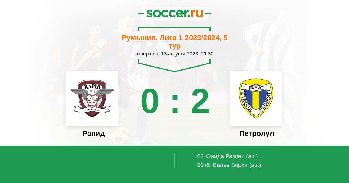 63' (0:1) Автогол Оаида Разван (26)