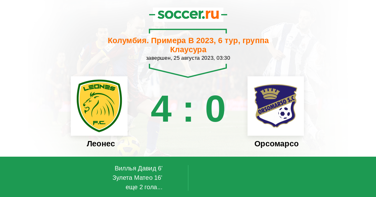 Протокол матча Леонес против Орсомарсо