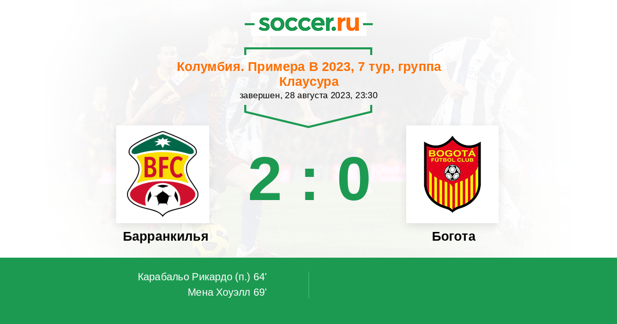 Протокол матча Барранкилья против Богота