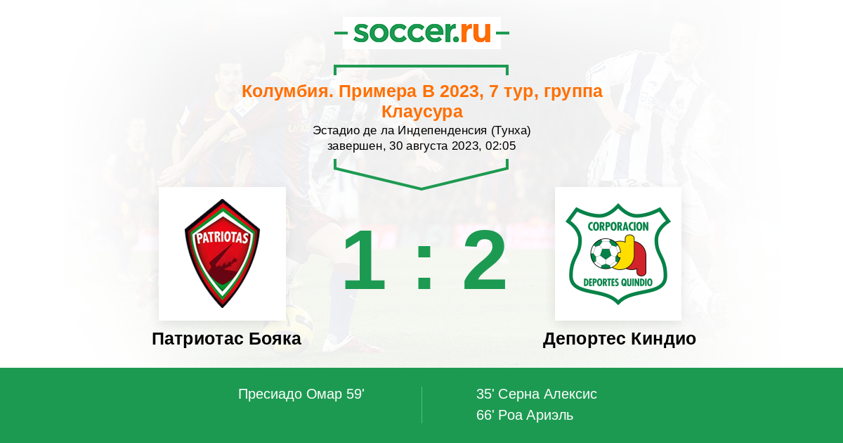 Протокол матча Патриотас Бояка против Депортес Киндио