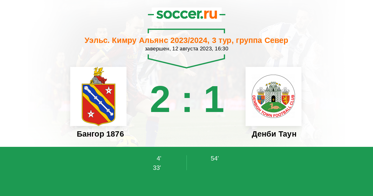 Протокол матча Бангор 1876 против Денби Таун