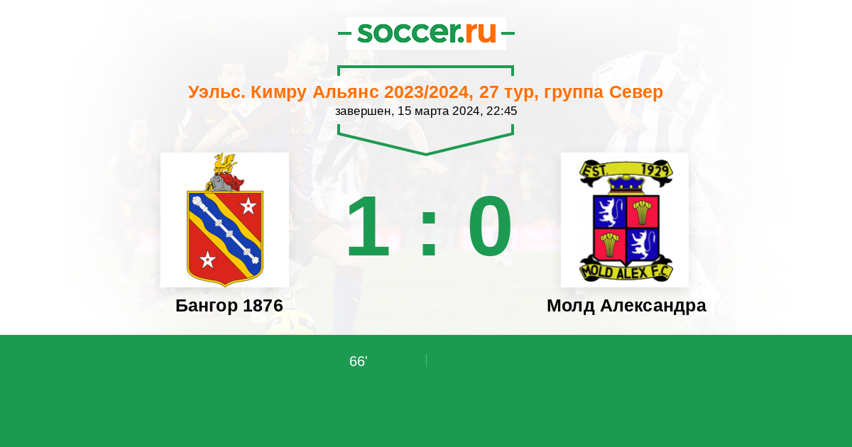 Протокол матча Бангор 1876 против Молд Александра