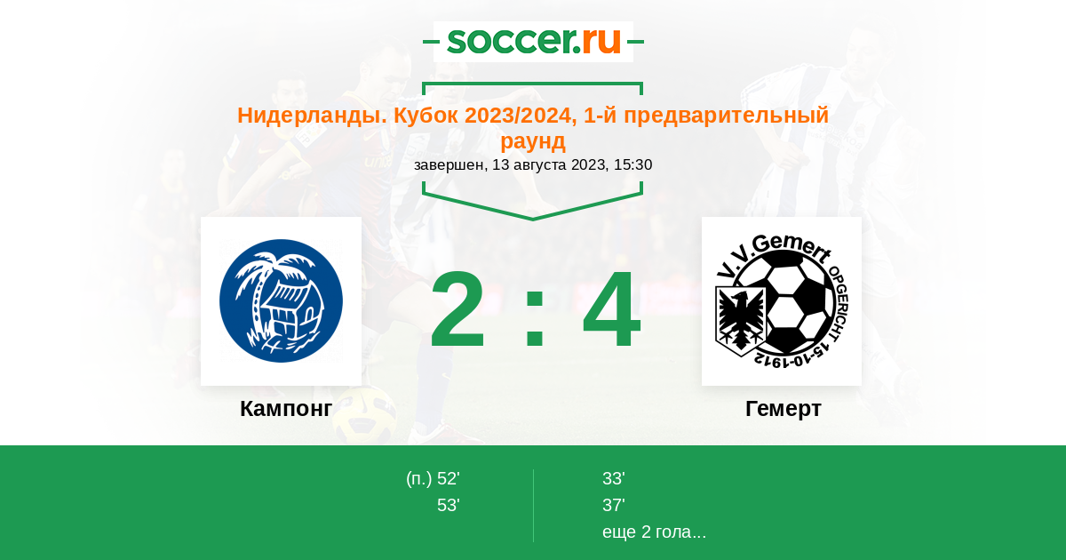 Протокол матча Кампонг против Гемерт
