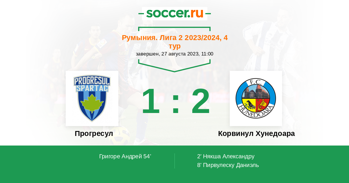Протокол матча Прогресул против Корвинул Хунедоара