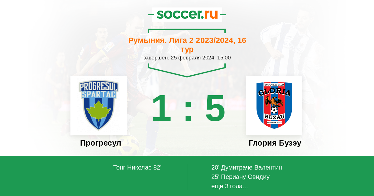 Протокол матча Прогресул против Глория Бузау