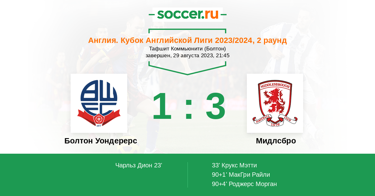 Протокол матча Болтон Уондерерс против Мидлсбро
