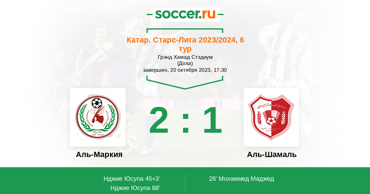 Протокол матча Аль-Маркия против Аль-Шамаль