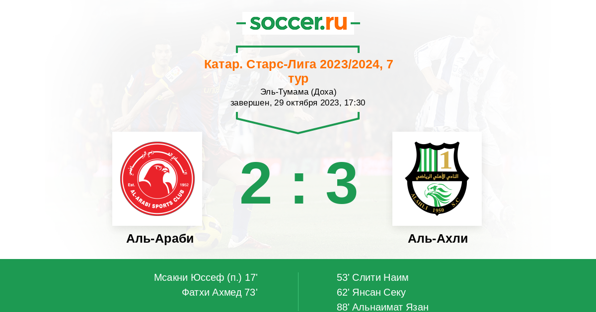 Протокол матча Аль-Араби против Аль-Ахли