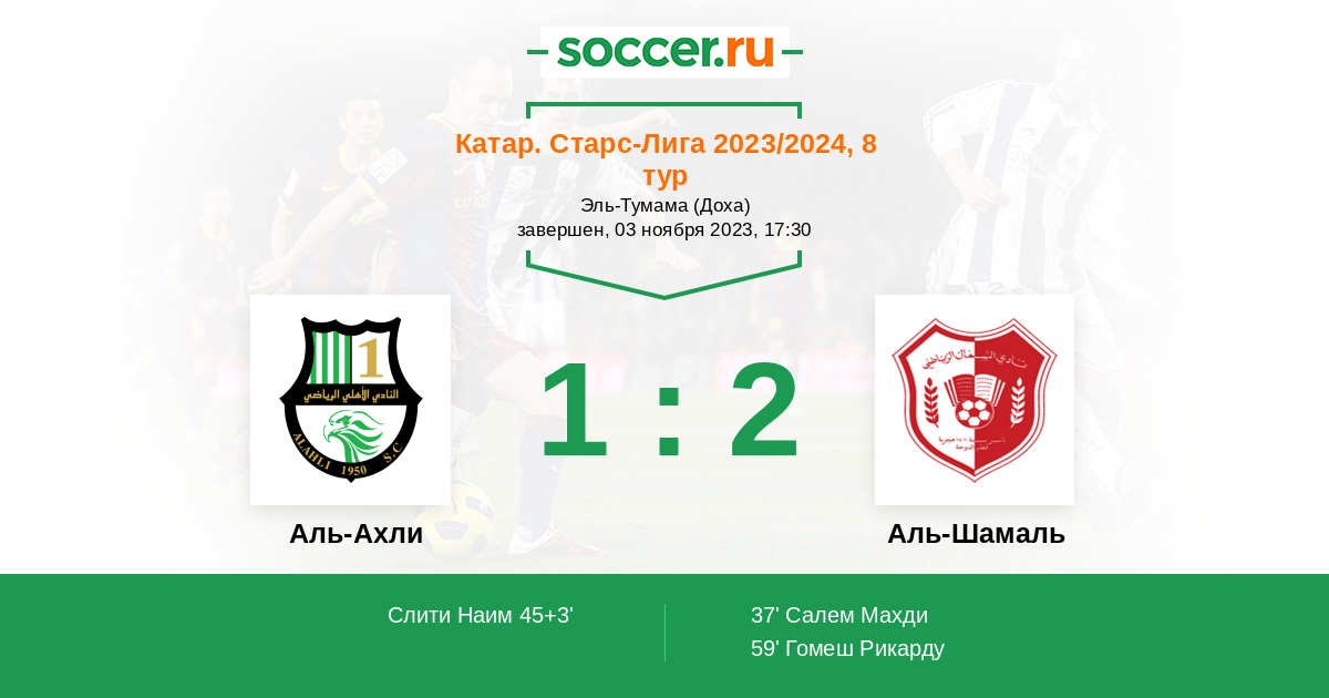 Протокол матча Аль-Ахли против Аль-Шамаль