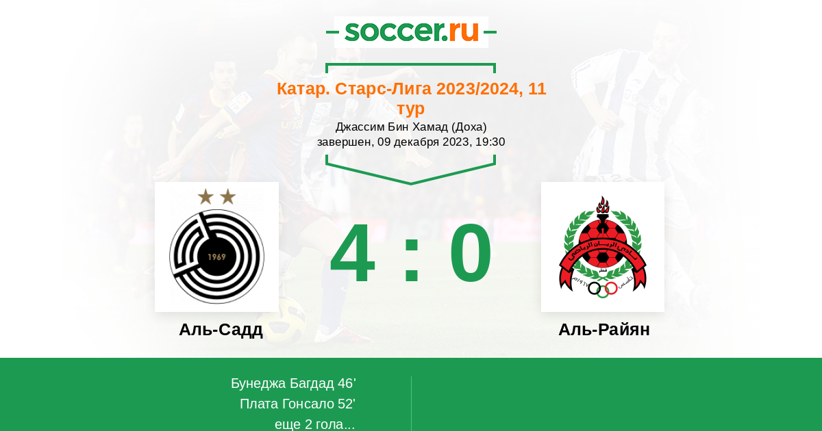 Протокол матча Аль-Садд против Аль-Райян