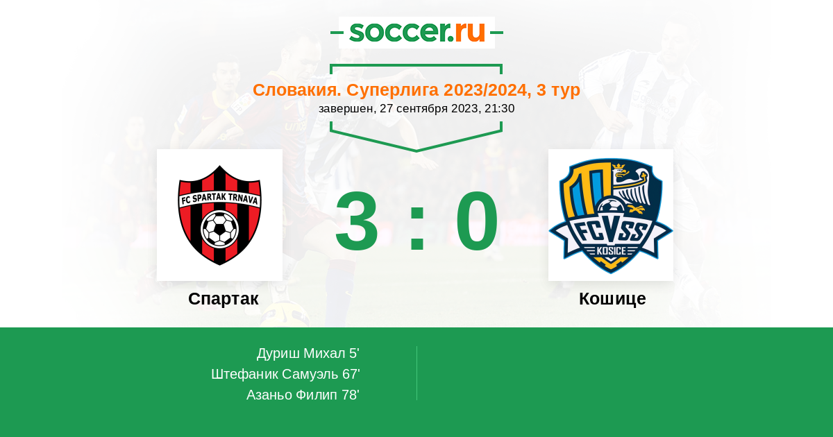 67' (2:0) Штефаник Самуэль (8) (Азаньо Филип (11))