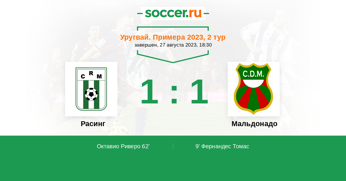 Протокол матча Расинг против Мальдонадо