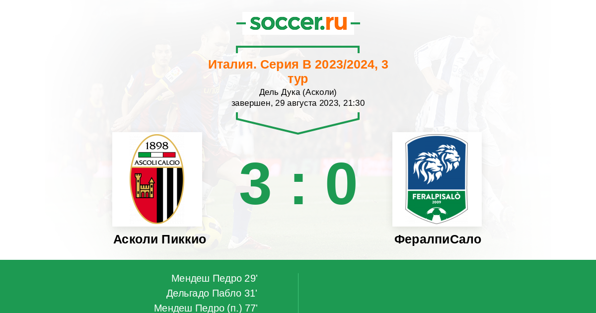 29' (1:0) Мендеш Педро (90) (Манзари Джакомо (28))