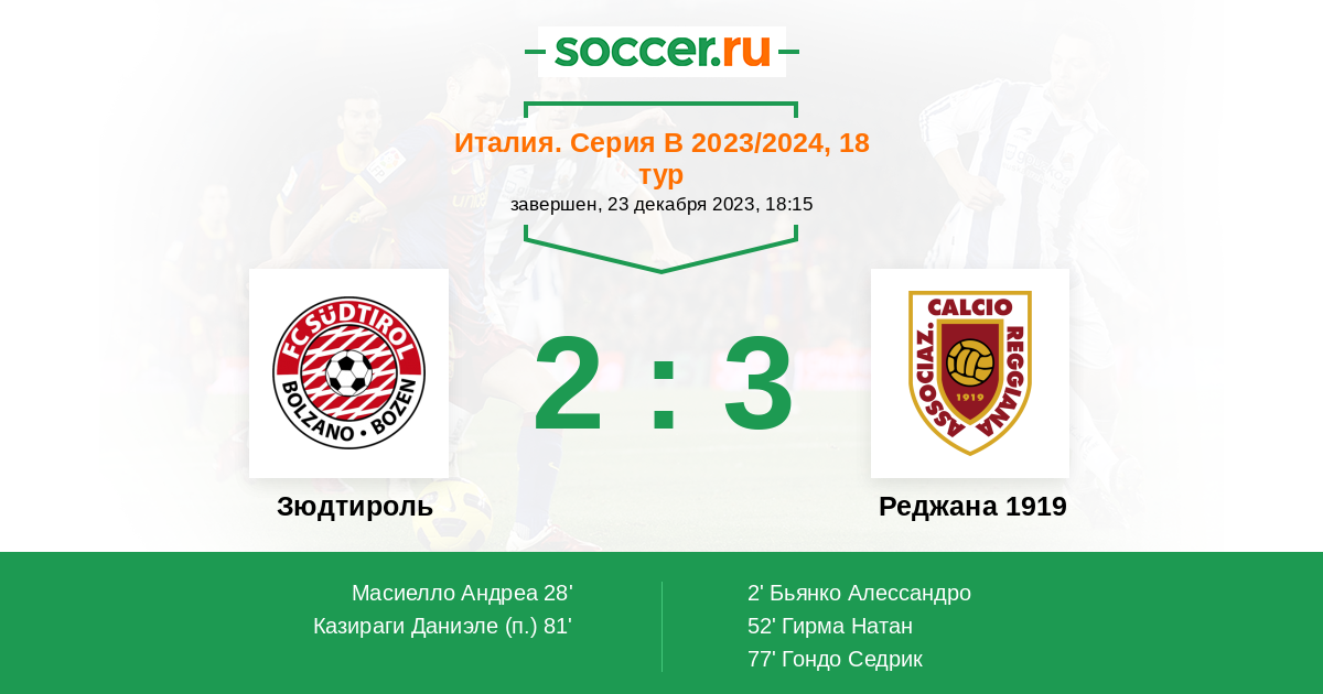 52' (1:2) Гирма Натан (80) (Фьямоцци Риккардо (15))