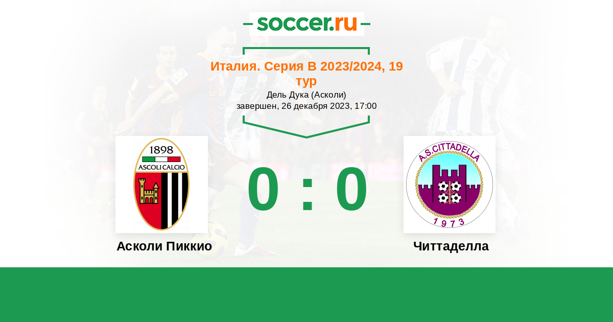 Протокол матча Асколи Пиккио против Читтаделла