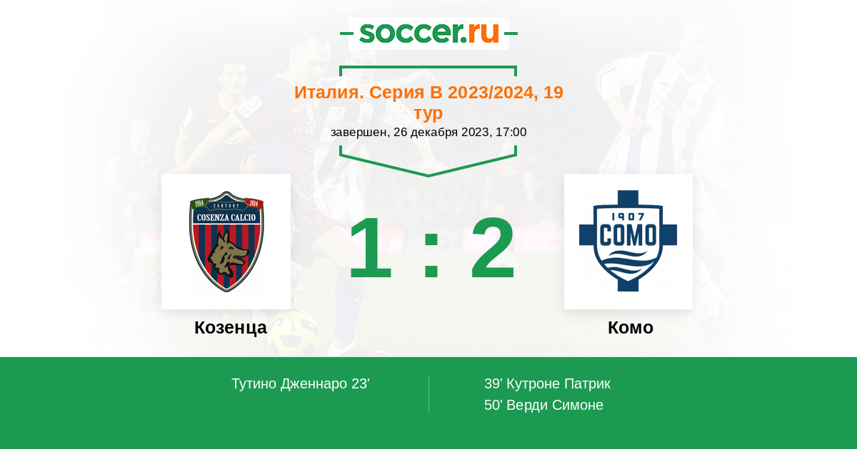 Протокол матча Козенца против Комо