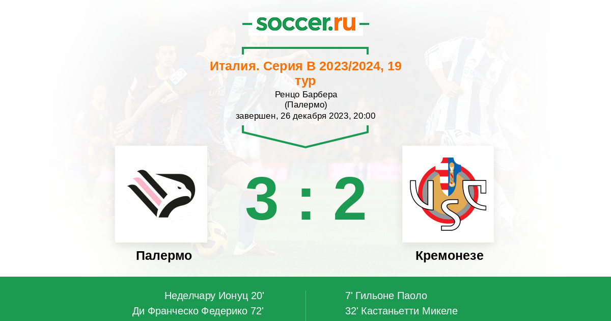 Протокол матча Палермо против Кремонезе