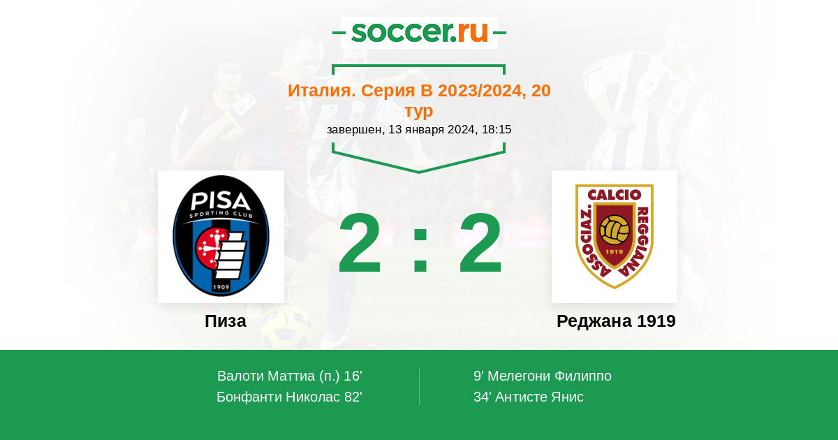 Протокол матча Пиза против Реджана 1919