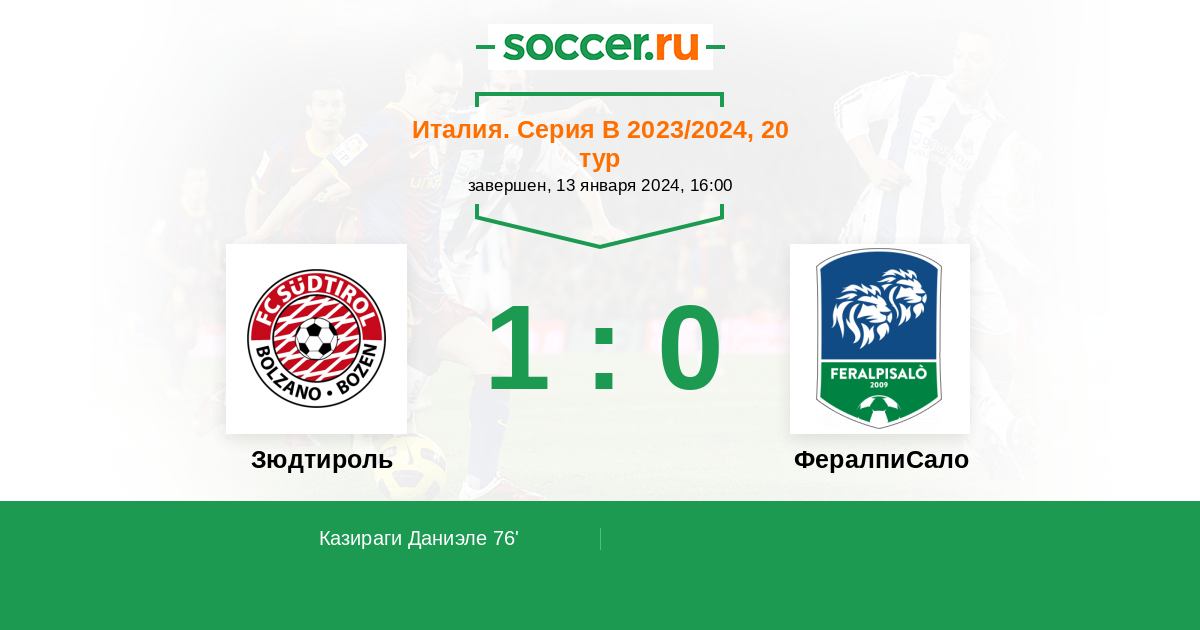 Протокол матча Зюдтироль против ФералпиСало