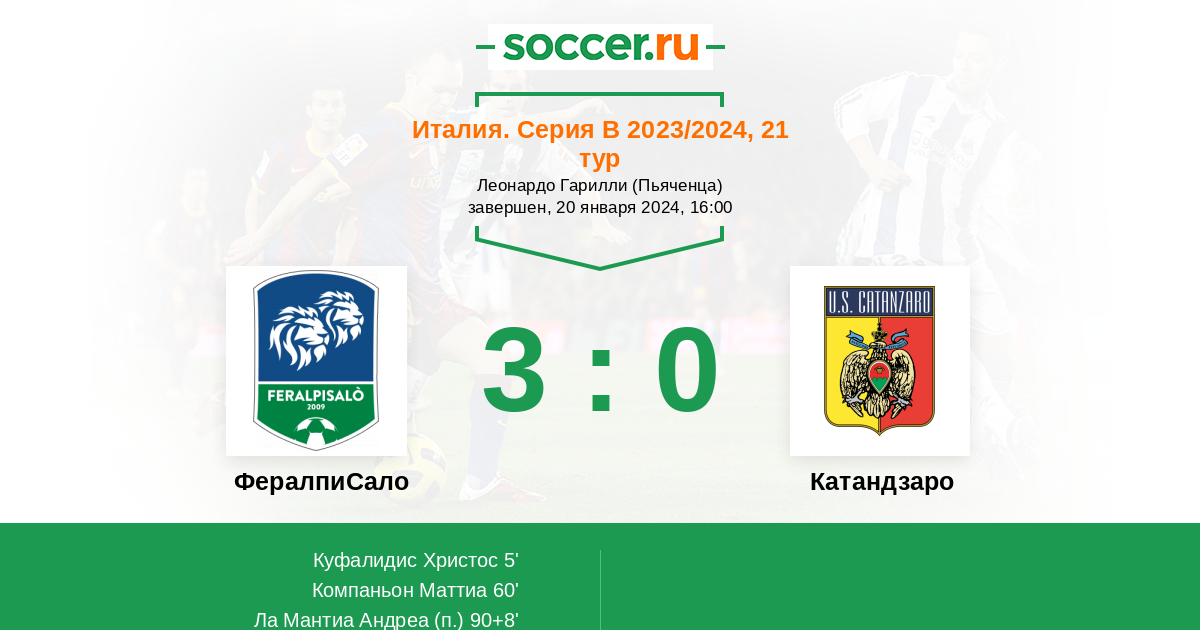Протокол матча ФералпиСало против Катандзаро