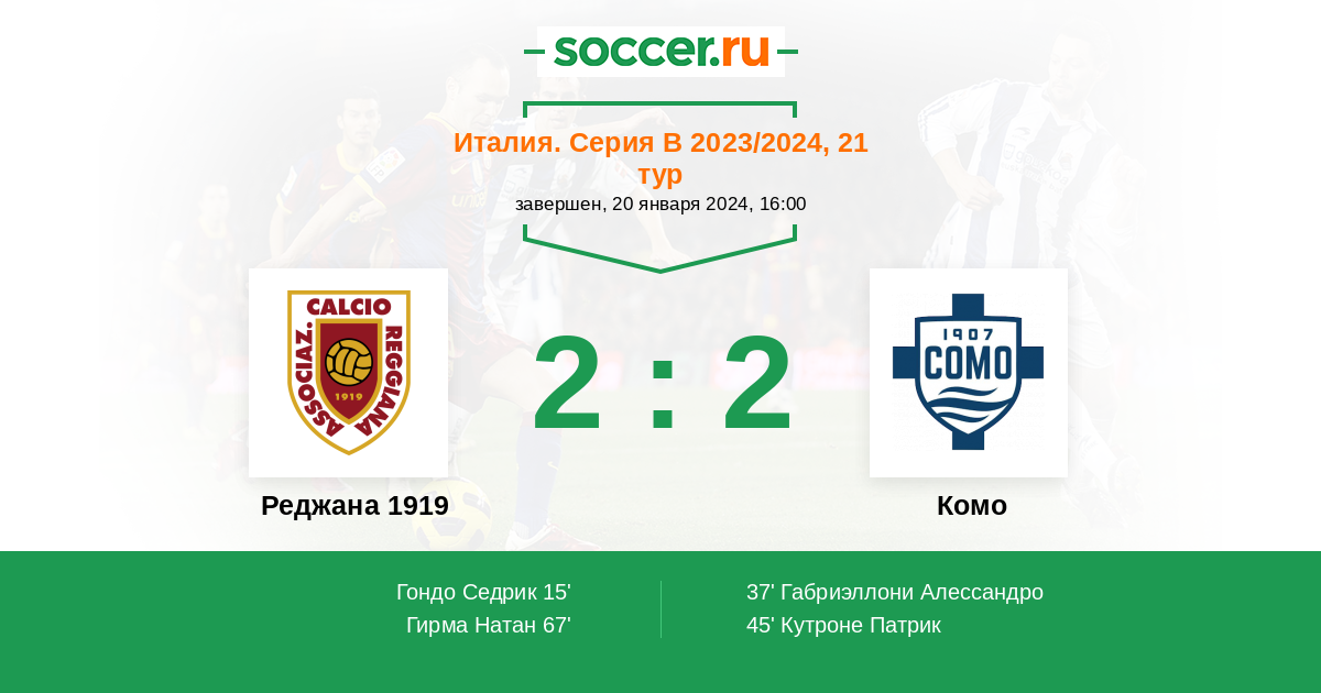 Протокол матча Реджана 1919 против Комо