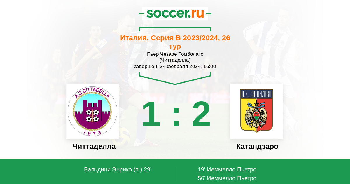 19' (0:1) Иеммелло Пьетро (9) (Шитум Марио (92))