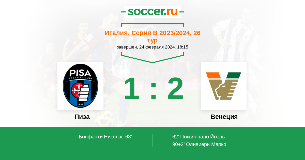 Протокол матча Пиза против Венеция