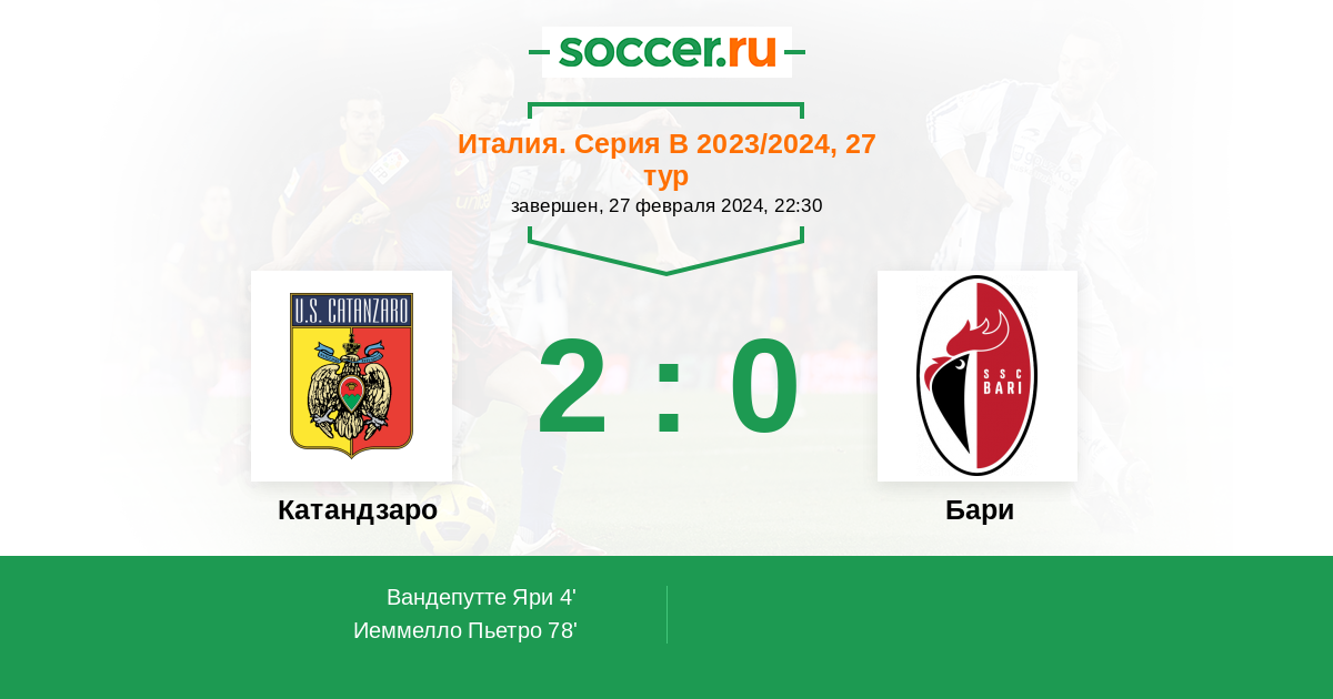 Протокол матча Катандзаро против Бари