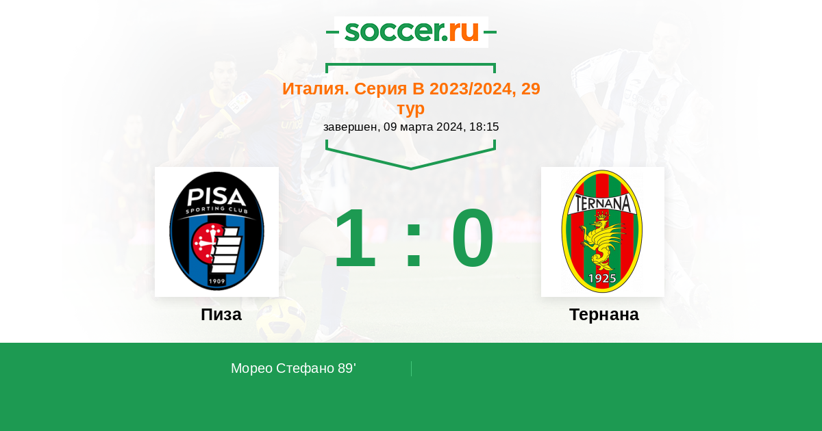 Протокол матча Пиза против Тернана