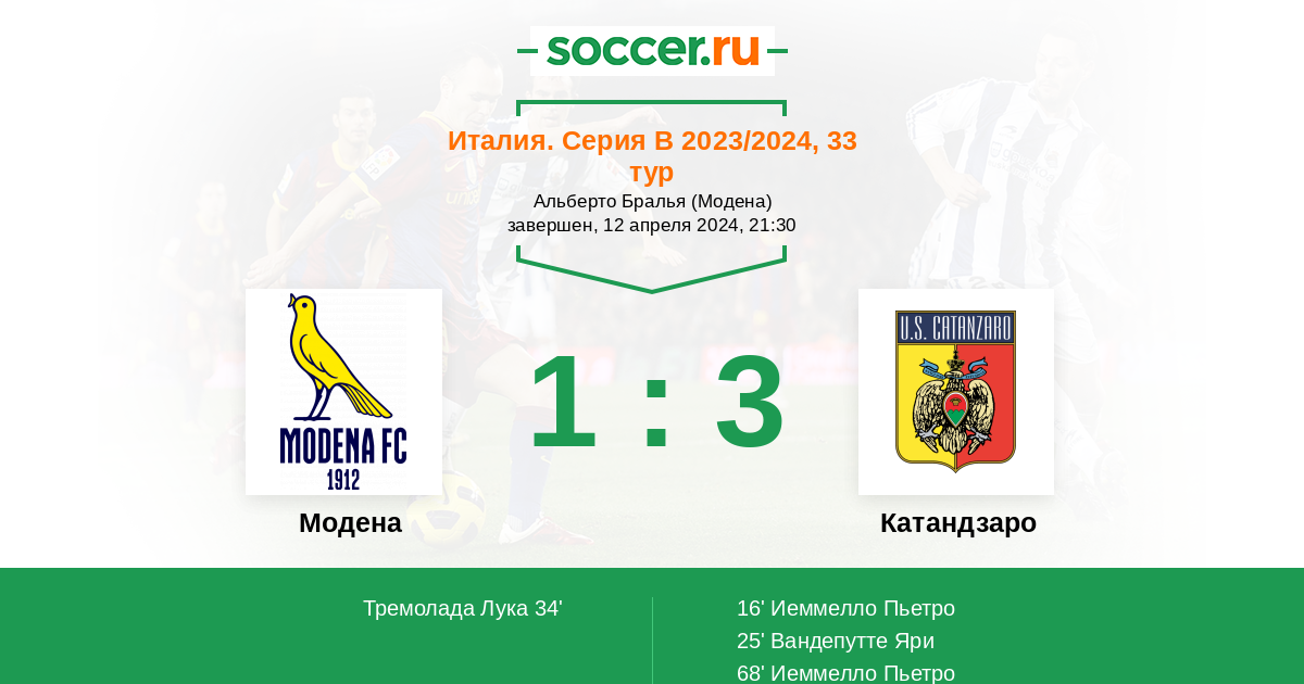 Протокол матча Модена против Катандзаро