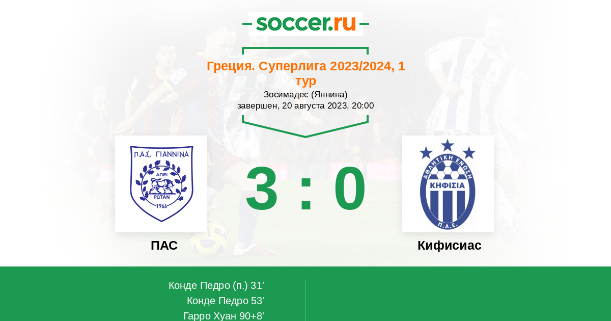 Гол90+8' (3:0) Гарро Хуан (10) (Памлидис Гиоргос (14))