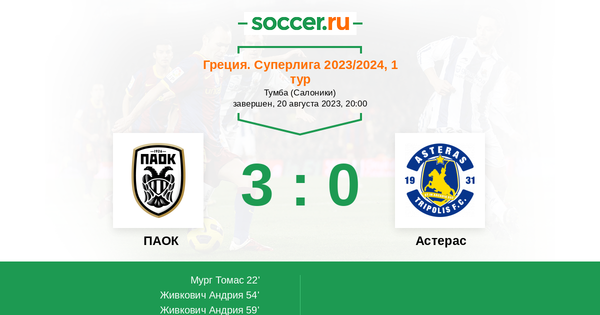 Протокол матча ПАОК против Астерас