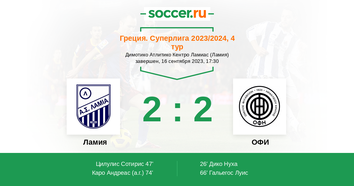 Протокол матча Ламия против ОФИ