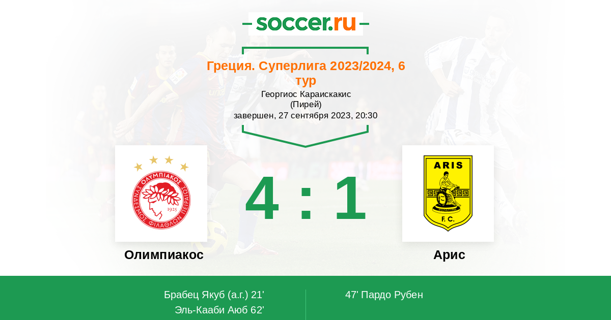 Протокол матча Олимпиакос против Арис
