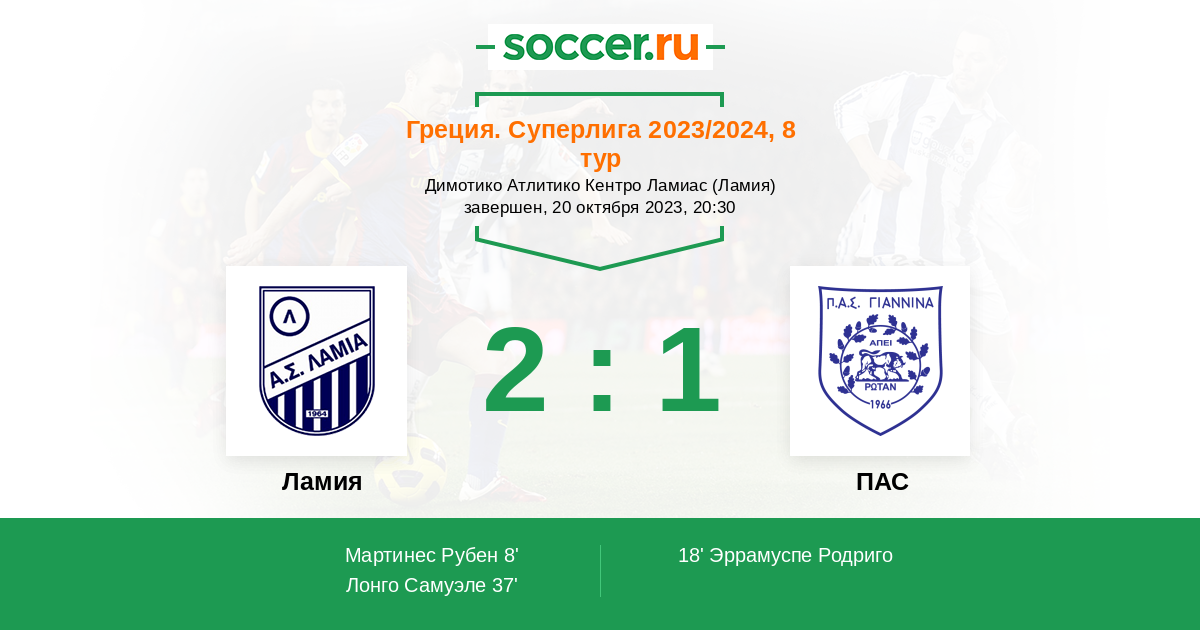 Протокол матча Ламия против ПАС