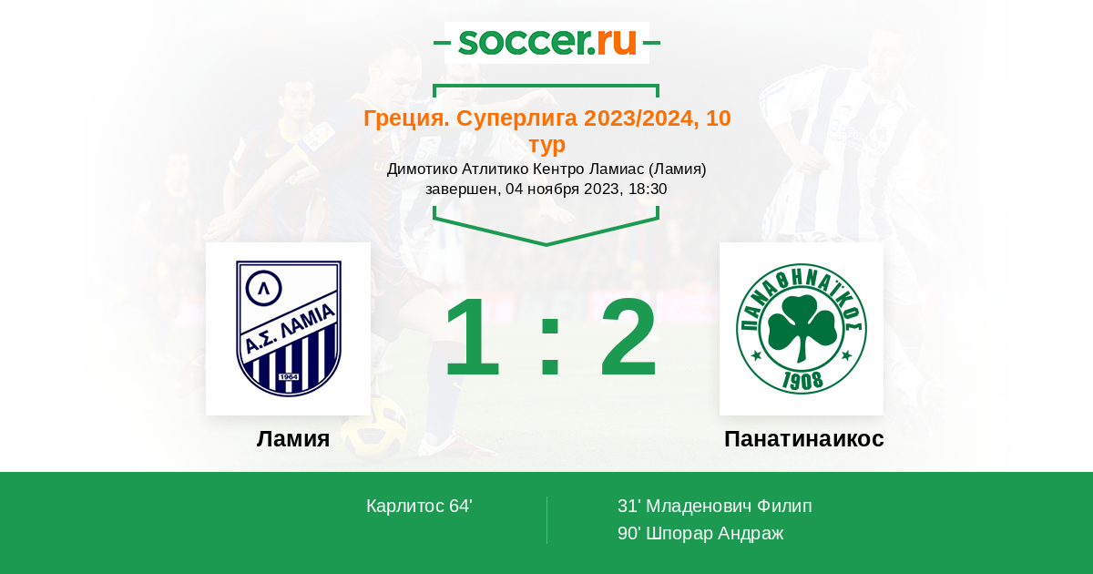 64' (1:1) Карлитос (10) (Цилулис Сотирис (23))